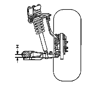 The Z height dimension measurement determines the proper ride height for the front end of the vehicle. There is no adjustment procedure. Repair may require replacement of suspension components.