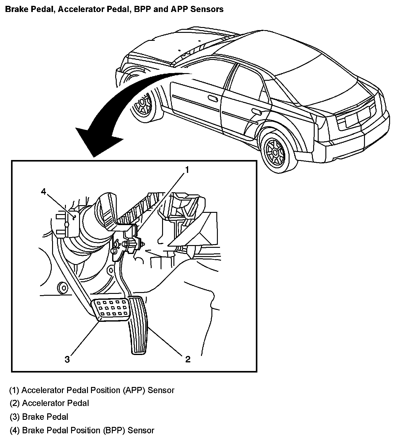 Brake Pedal, Accelerator Pedal, BPP and APP Sensors: