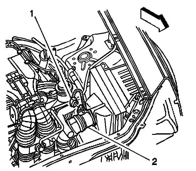 1. Disconnect the electrical connector (1) from the mass air flow (MAF)/intake air temperature (IAT) sensor (2).