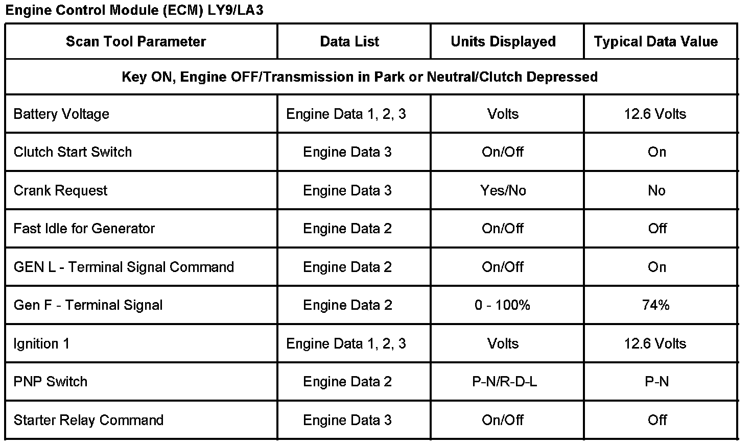 Scan Tool Data List - Engine Control Module (ECM)