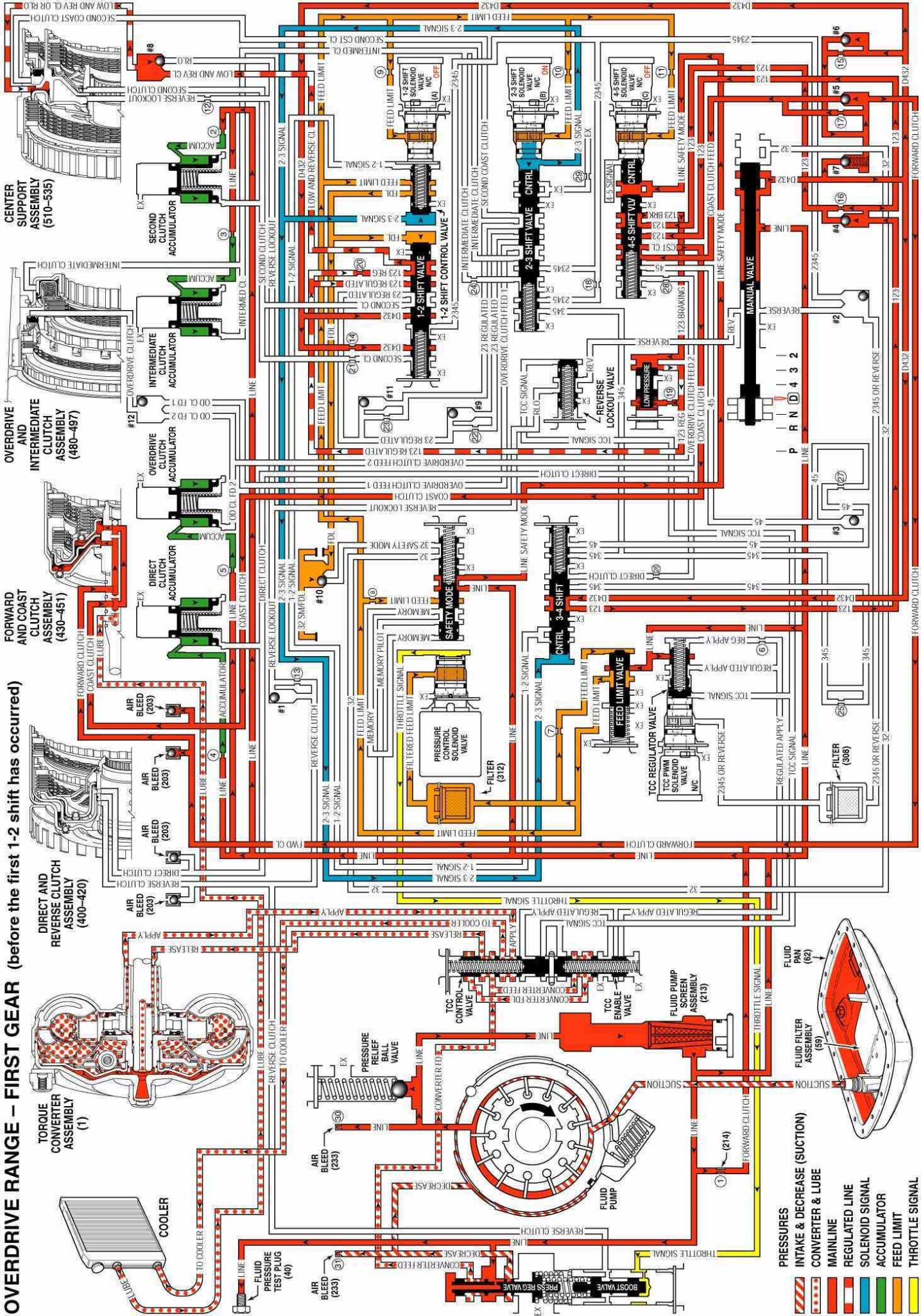 Overdrive Range, First Gear (Before First 1-2 Shift)