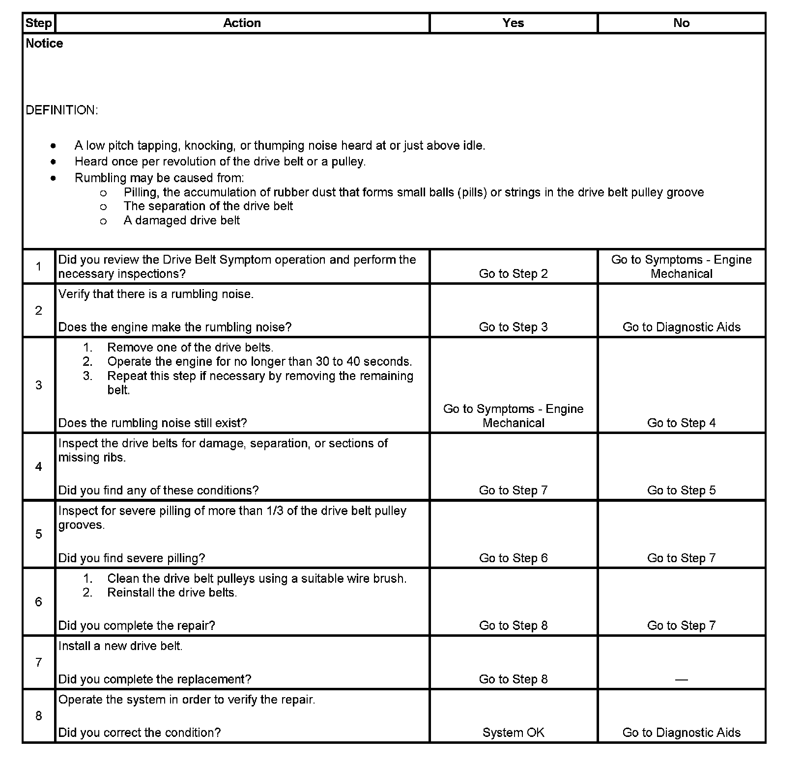 Drive Belt Rumbling DiagnosisDiagnostic Aids