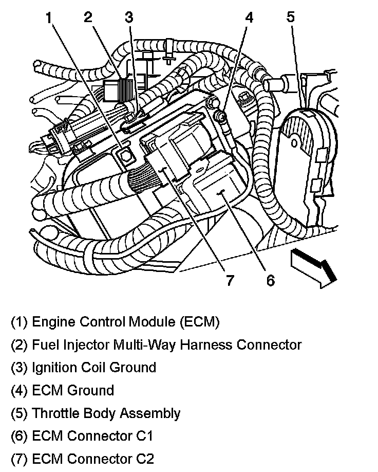 The ECM is in the engine compartment. The ECM is the control center of the engine controls system. The ECM controls the following components: