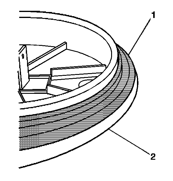 1. Place the new primary fuel tank module seal (1) over the module (2).