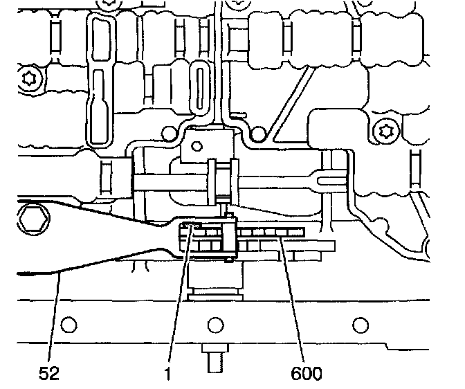 8. Install a 0.8 mm spacer (1) between the manual shaft detent lever (600) and the manual shaft detent assembly (52).