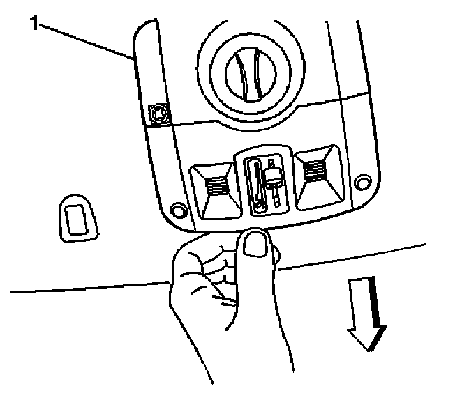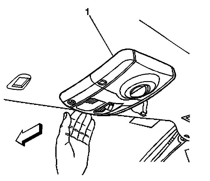 1. Using your fingers, gently pull downward at the front edge of the overhead console (1).