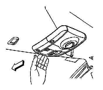 1. Using your fingers, gently pull downward with equal pressure to release the retainers of the overhead console (1).