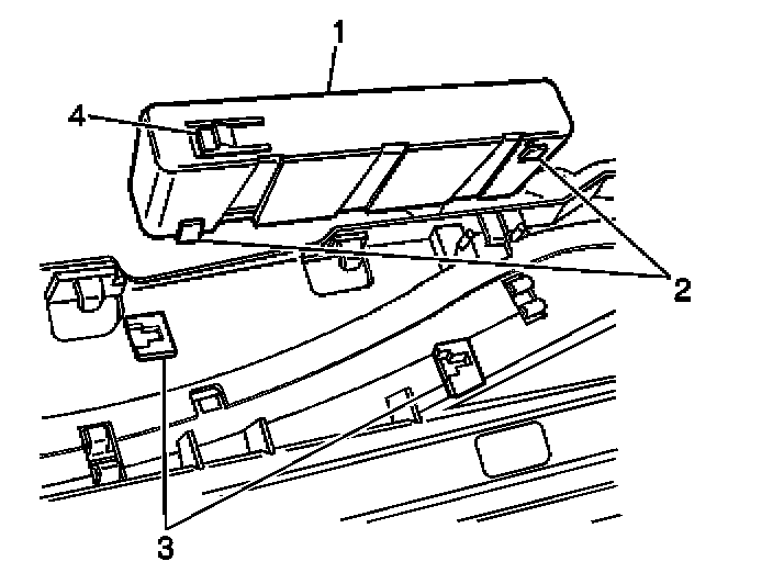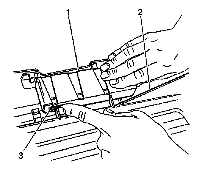 3. Depress the tab (3) on the forward side of the sunroof control module (1).