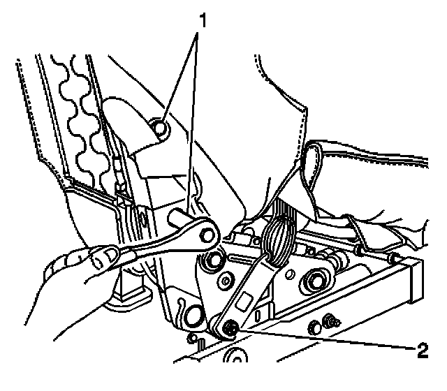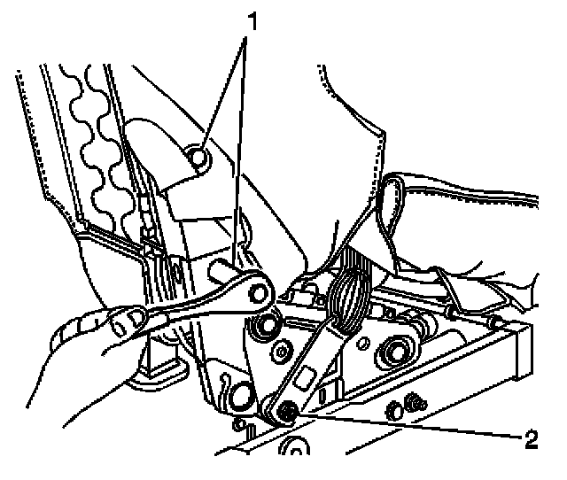 9. Remove the bolts (1) retaining the seat back frame to the recliner.