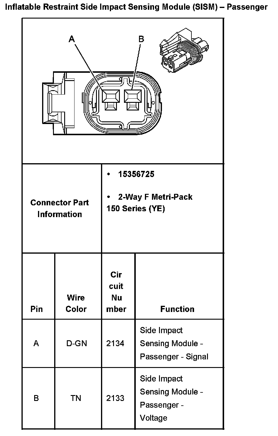 Inflatable Restraint Side Impact Sensing Module (SISM)-Passenger: