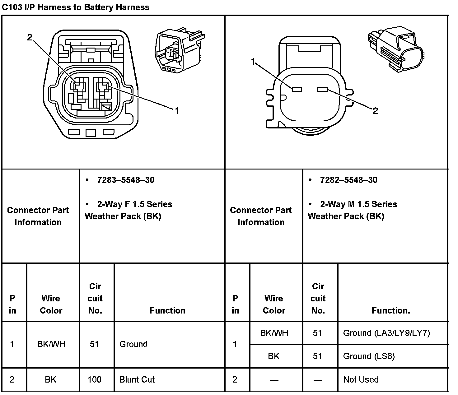 C103 I/P Harness To Battery Harness: