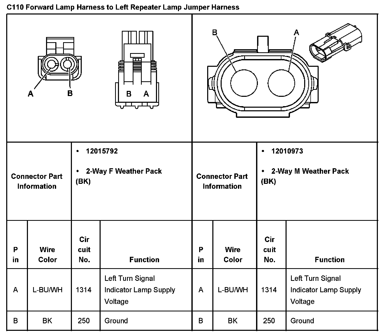C110 Forward Lamp Harness To Left Repeater Lam Jumper Harness: