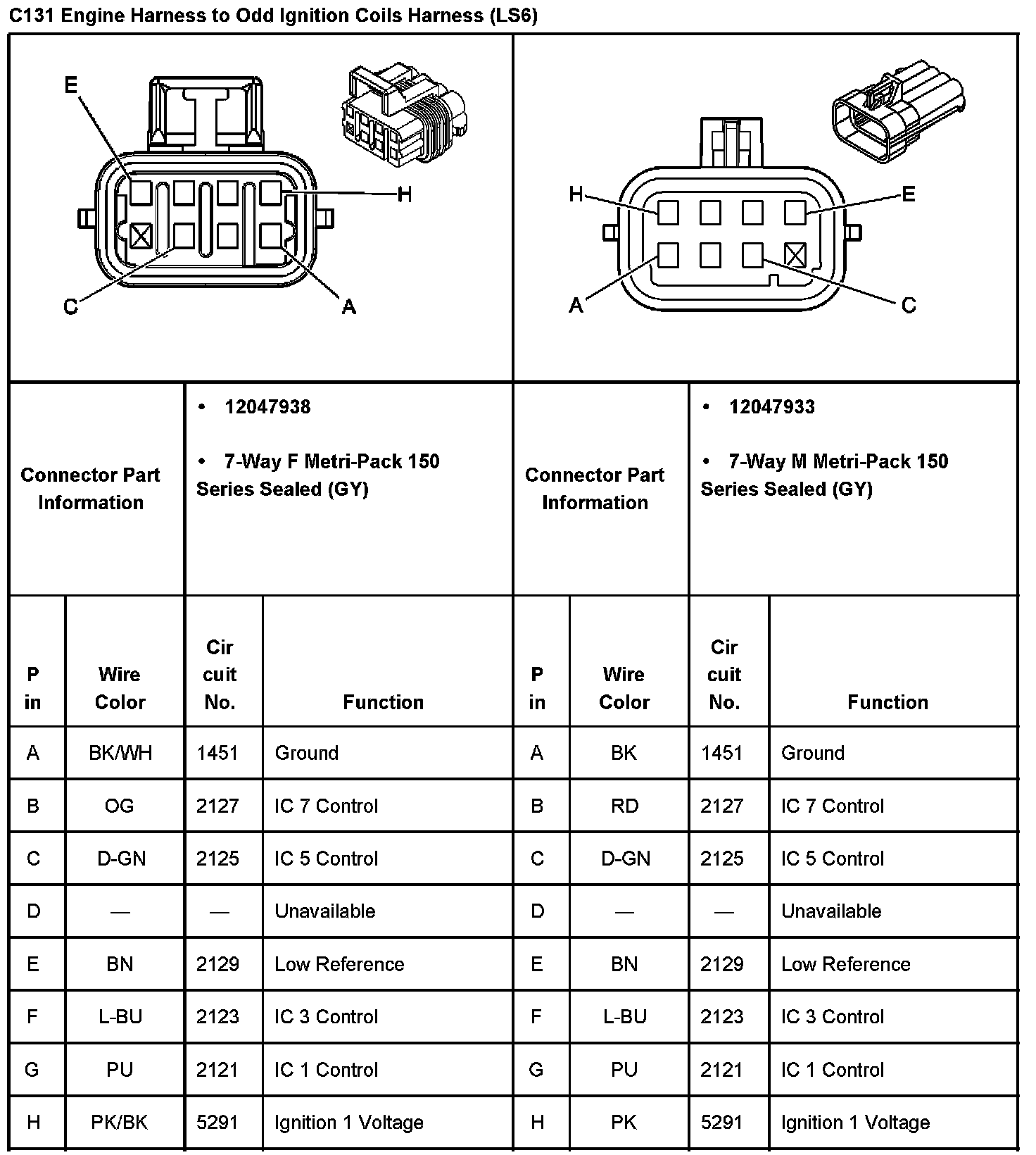 C131 Engine Harness To Odd Ignition Coils Harness: