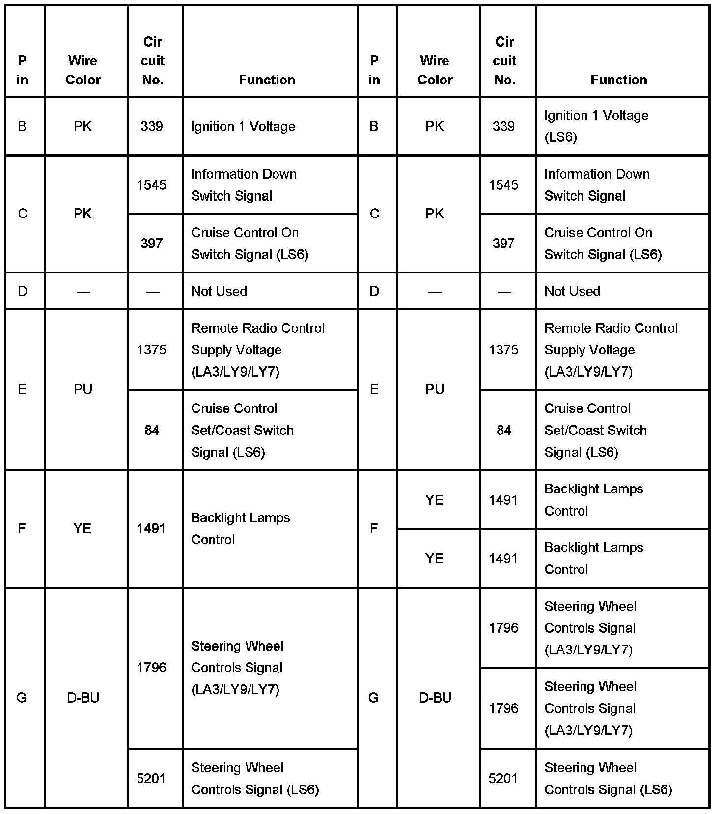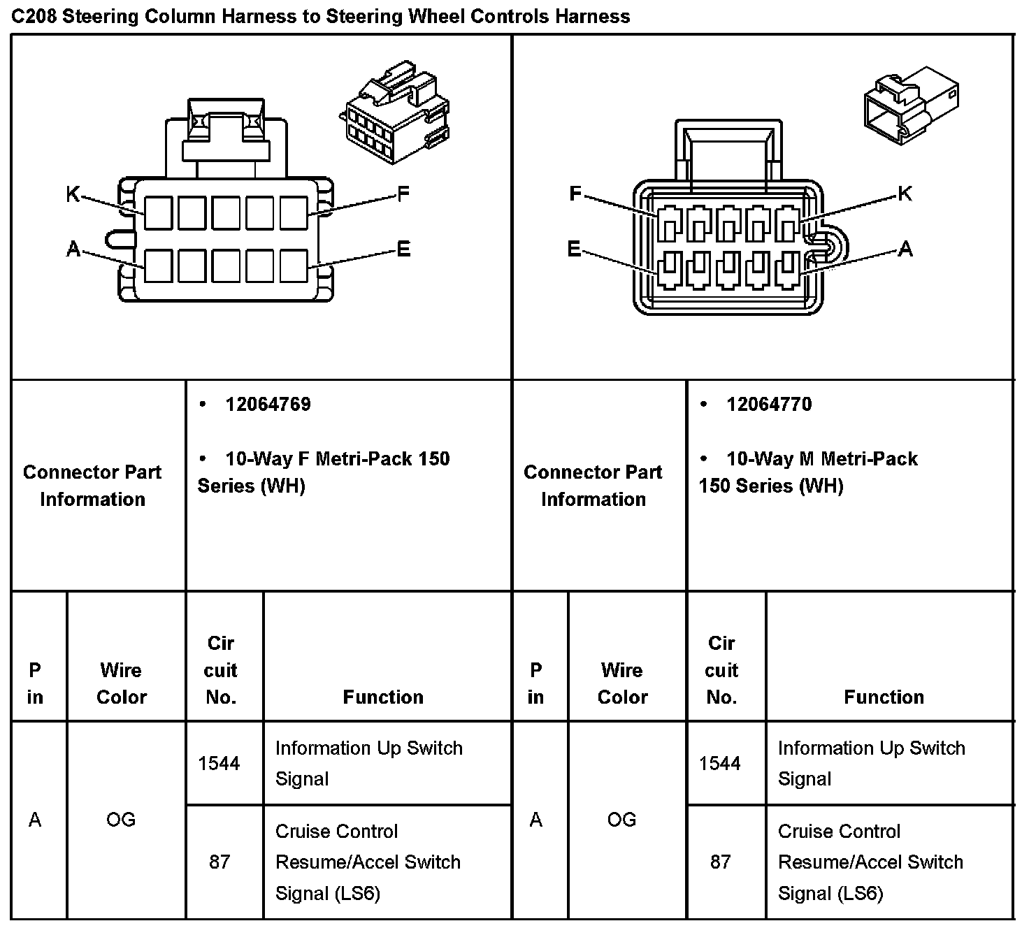 C208 Steering Column Harness To Steering Wheel Controls Harness Part 1: