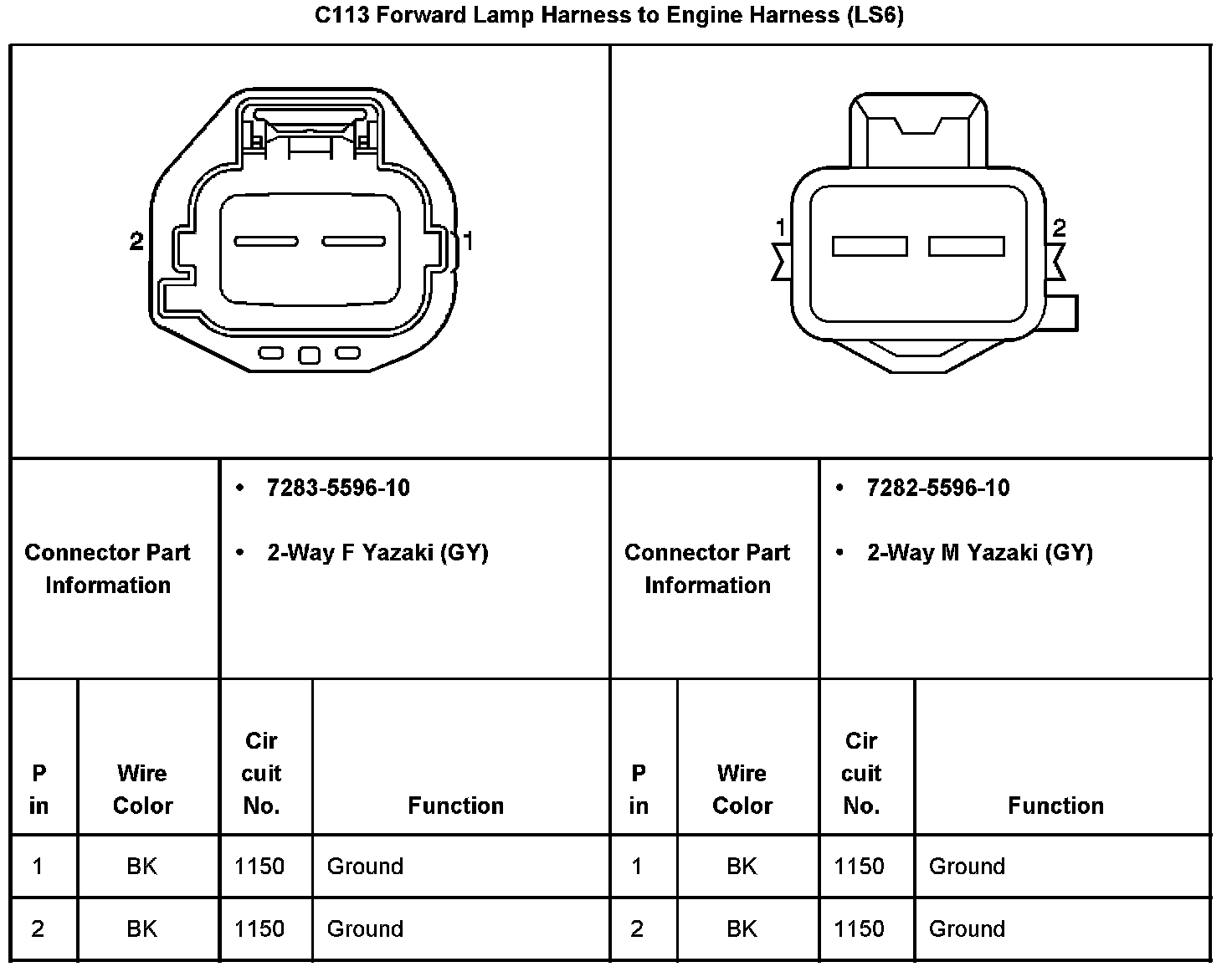 C113 Forward Lamp Harness To Engine Harness: