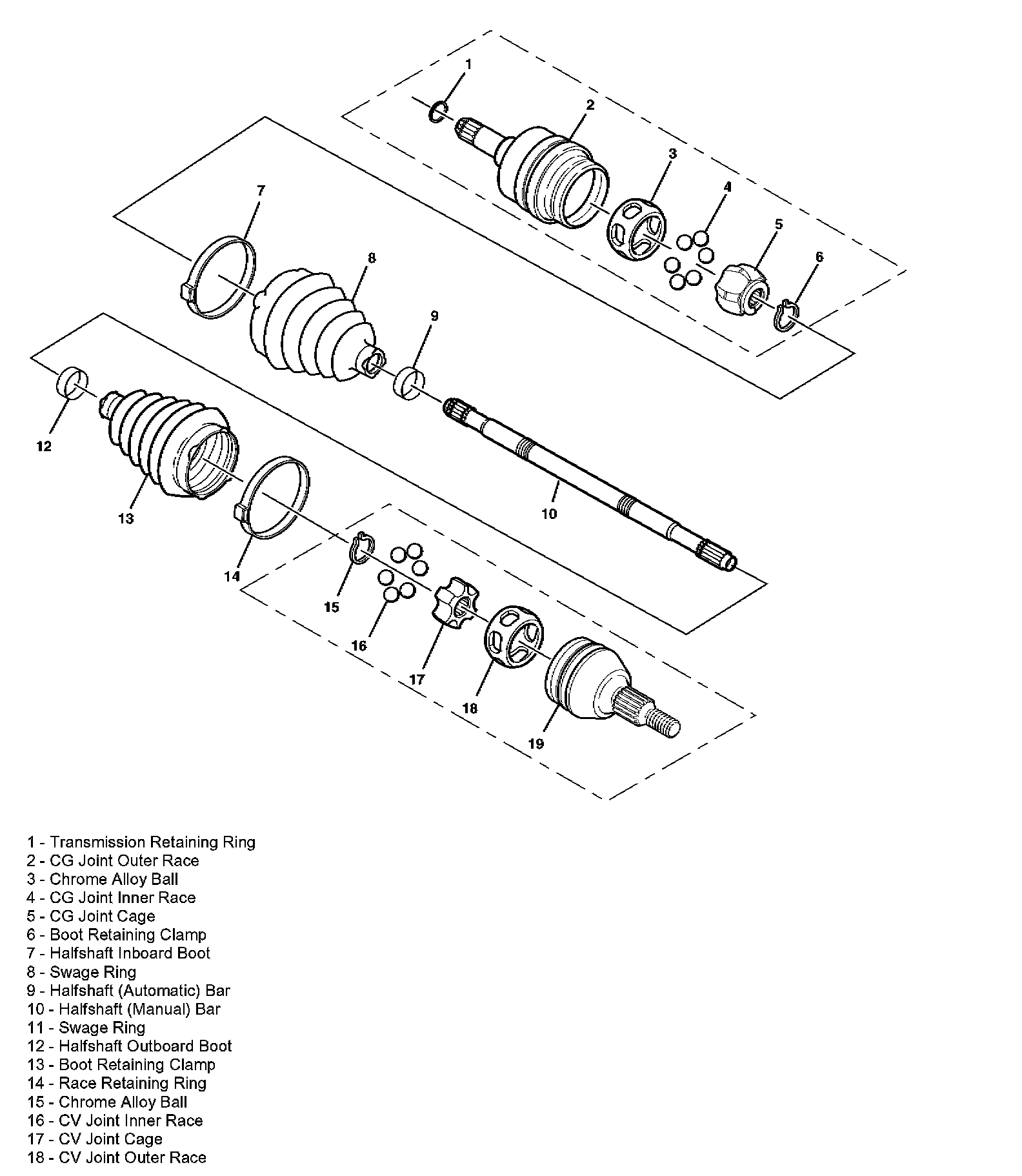 Wheel Drive Shafts Disassembled Views