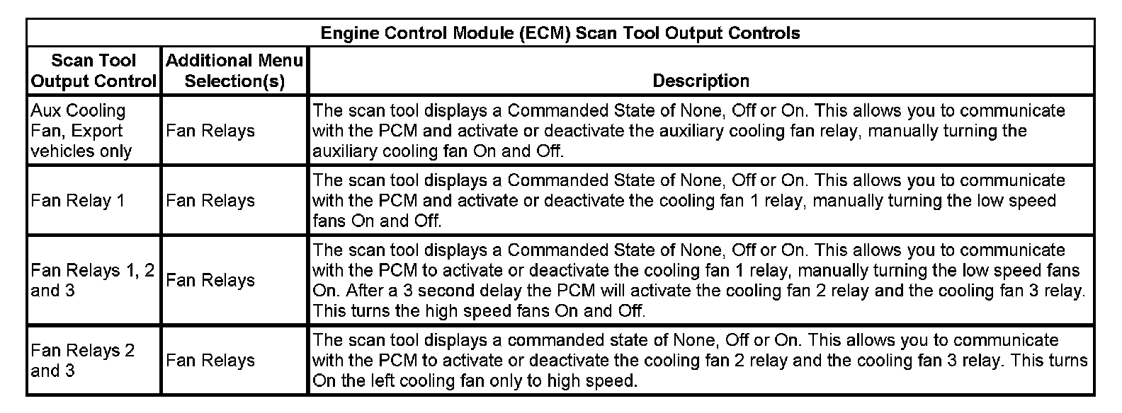Engine Control Module (ECM) Scan Tool Output Controls