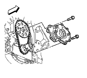 2. Install the oil pump onto the crankshaft sprocket until the pump housing contacts the face of the engine block.