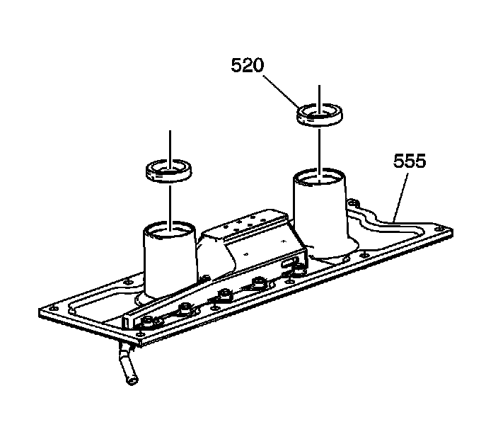 Install NEW knock sensor oil seals (520) into the valley cover (555).Lubricate the seal surfaces with clean engine oil.