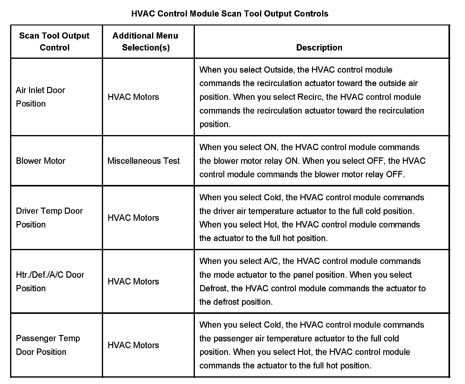 HVAC Control Module Scan Tool Output Controls: