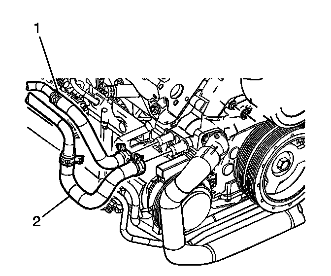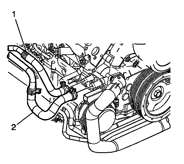 10. Remove the outlet heater hose (2) from the engine.
