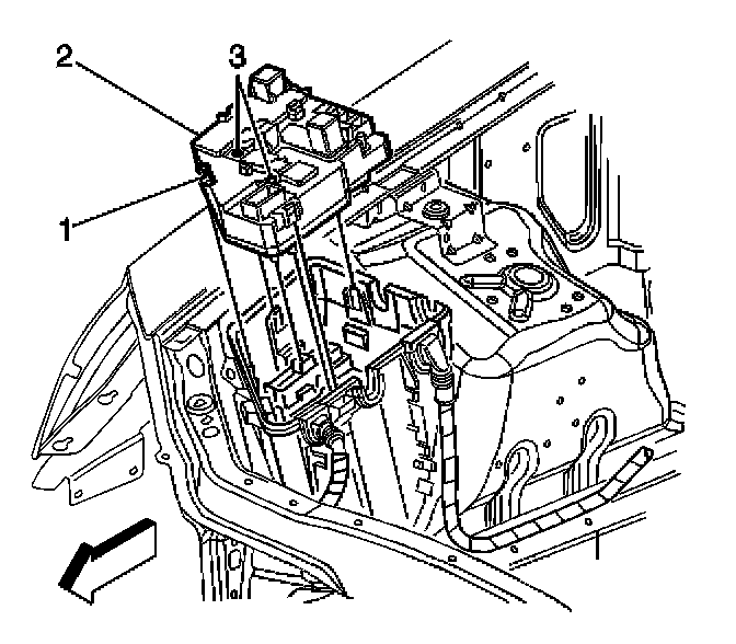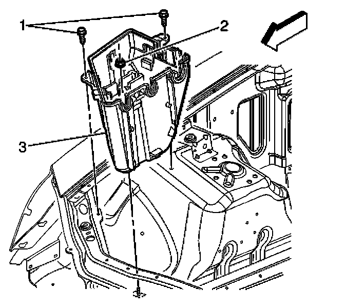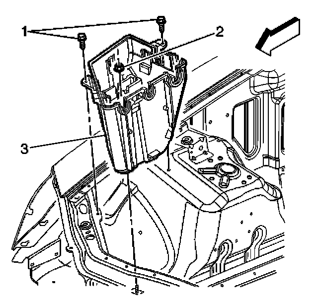 1. Install fasteners (1, 2) securing the electrical center (3) to vehicle.