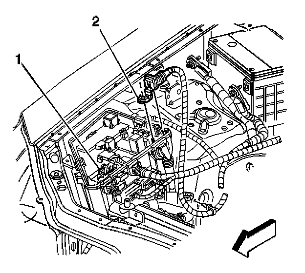 9. Remove the fasteners (1, 2) securing the electrical center (3) to vehicle.