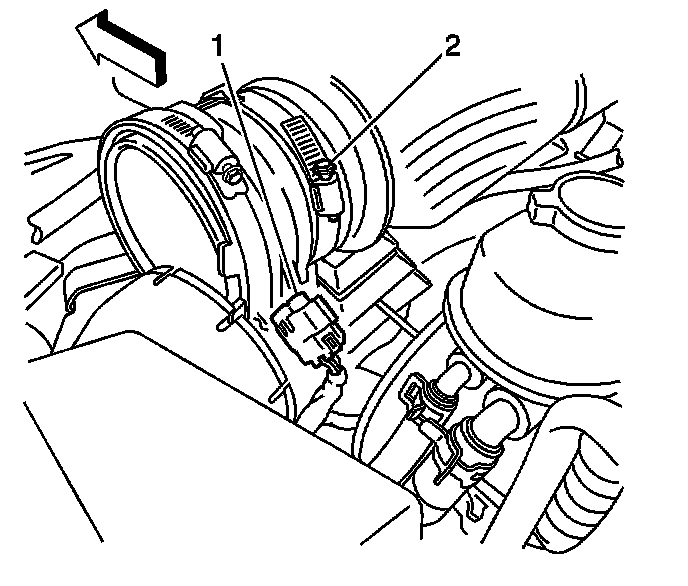 6. Loosen the MAF/IAT clamp (2).