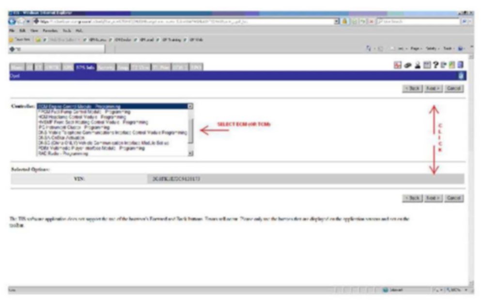 5. Select: ECM Engine Control Module - Programming from the Controller dropdown menu and select: Next.