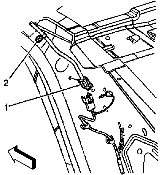 3. Install the roof rail module harness connector (1) to the wiring harness.
