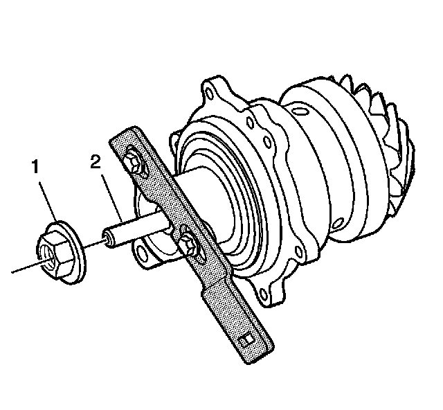 1. Remove the pinion flange nut (1) using J34826 while holding the flange with the J45012 and a breaker bar.
