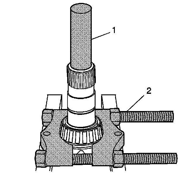 8. Install the J45006 (1) and press the bearing from the pinion shaft.
