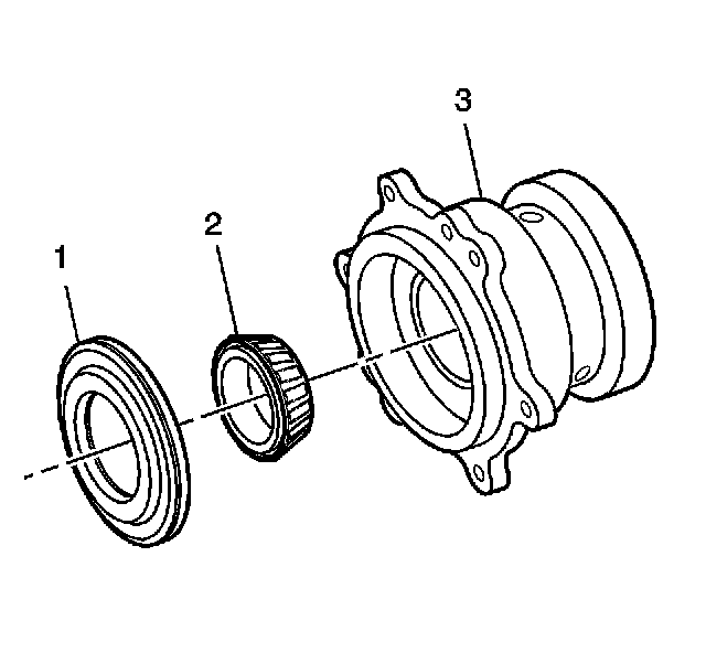 9. Remove the pinion oil seal (1) and the pinion bearing (2) from the bearing cage (3).