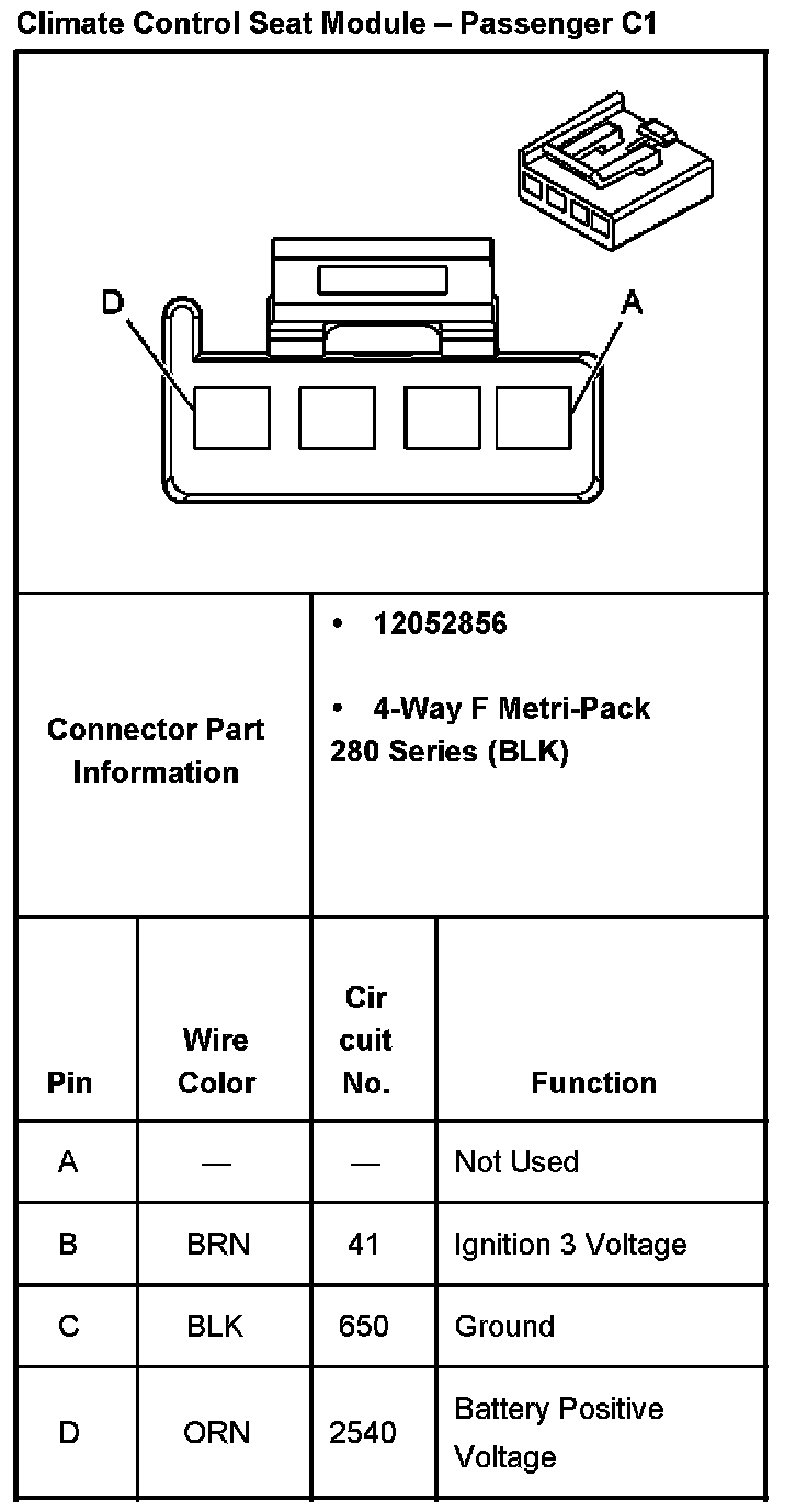 Climate Control Seat Module - Passenger C1: