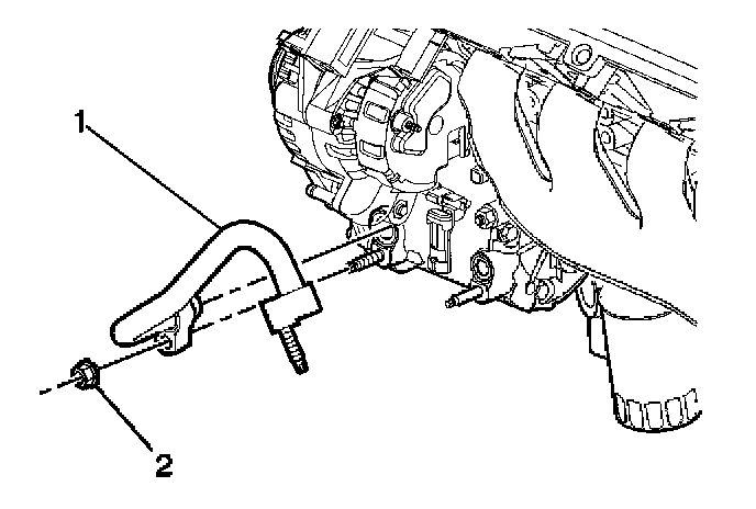 3. Install the compressor mounting stud (1) through the appropriate compressor mounting boss.