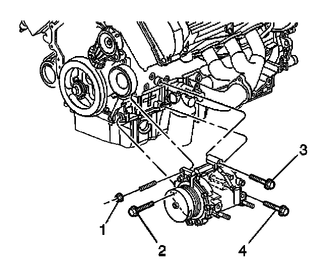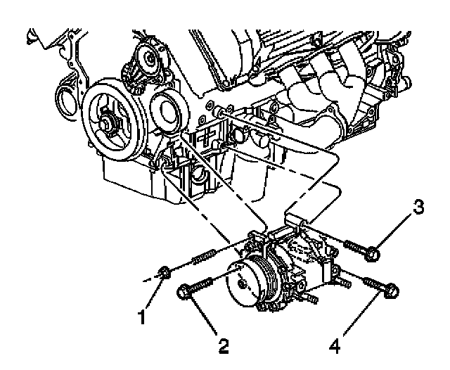 4. Install the compressor mounting fasteners (1, 2, 3, 4) and hand tighten the fasteners.