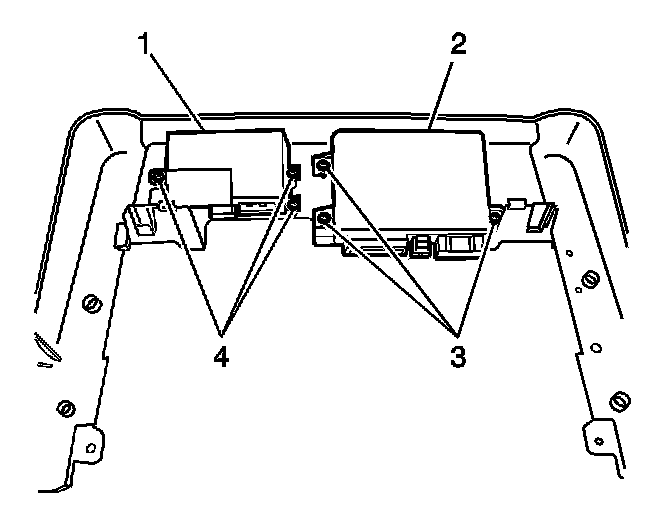 2. Install the fasteners (4) that connect the climate control seat module (1) to the driver side trim panel.