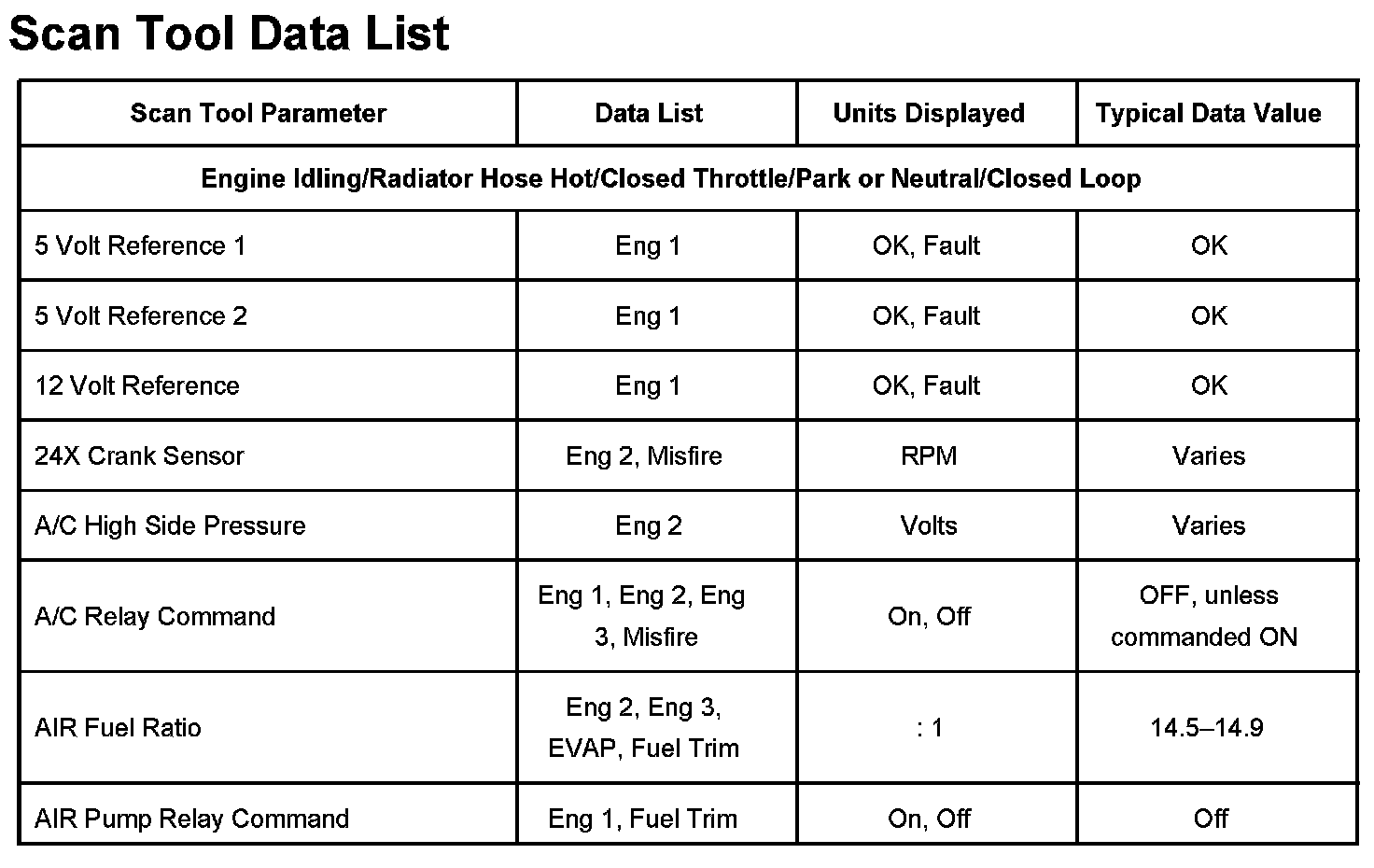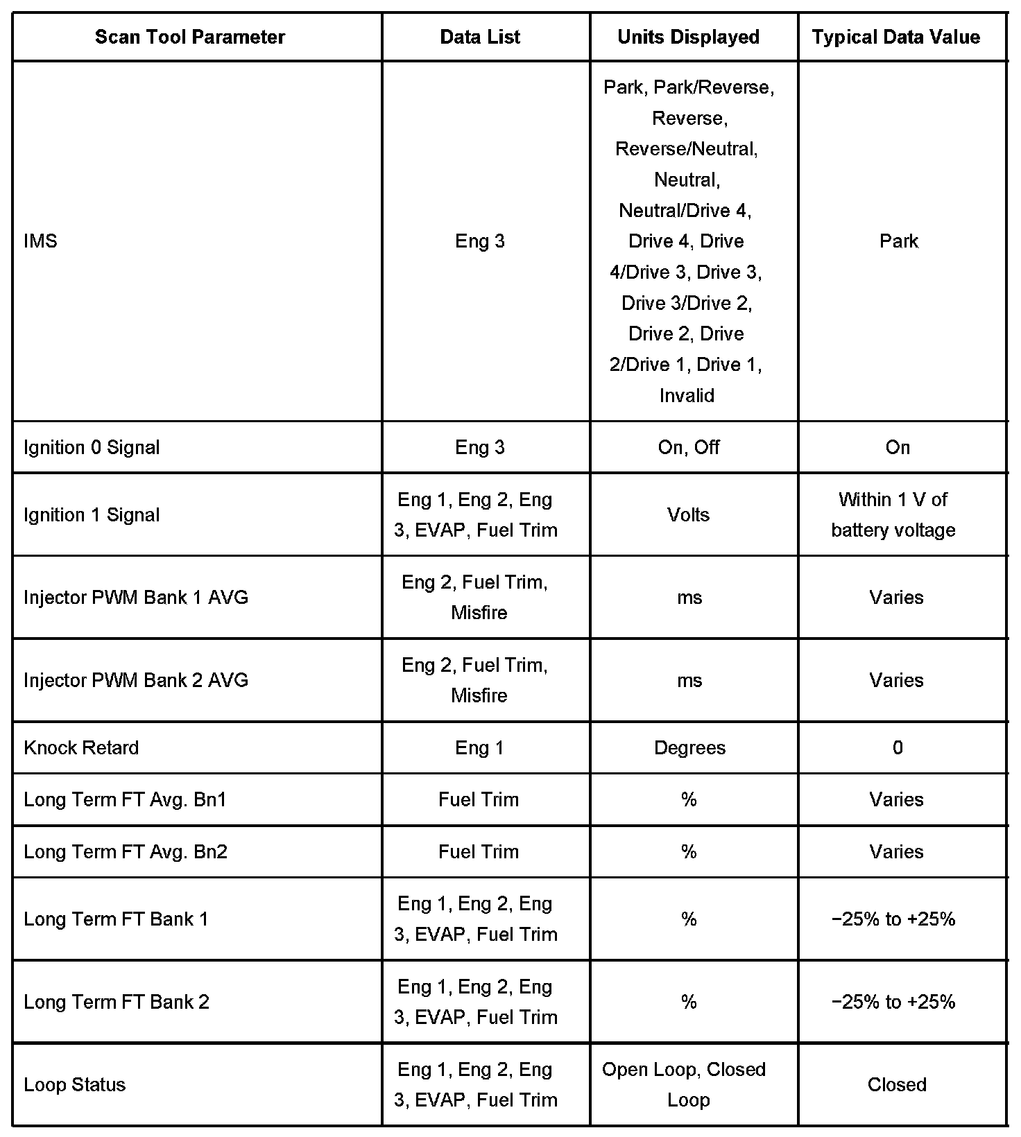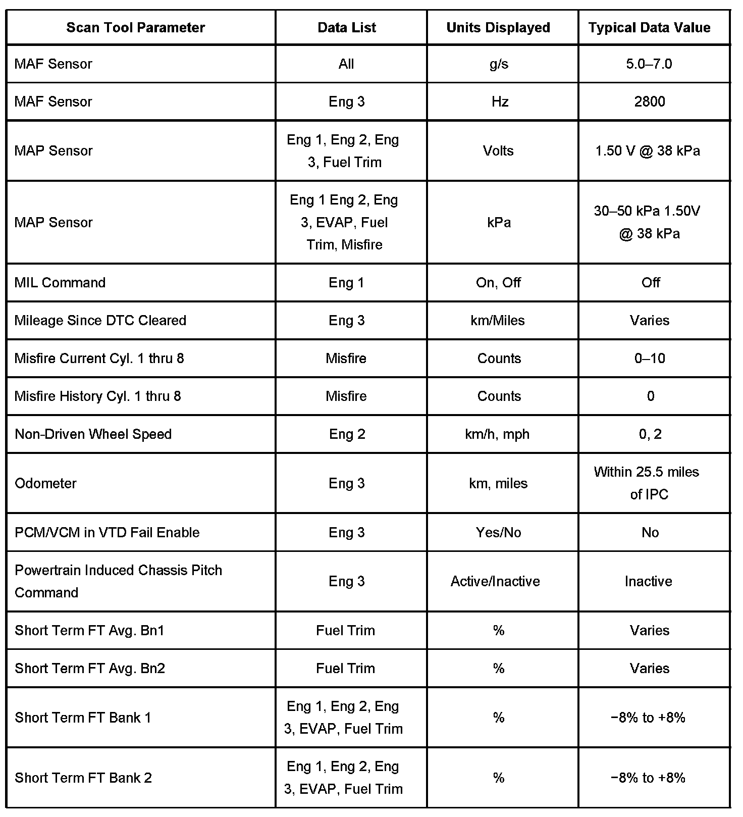 Scan Tool Data List - Powertrain System