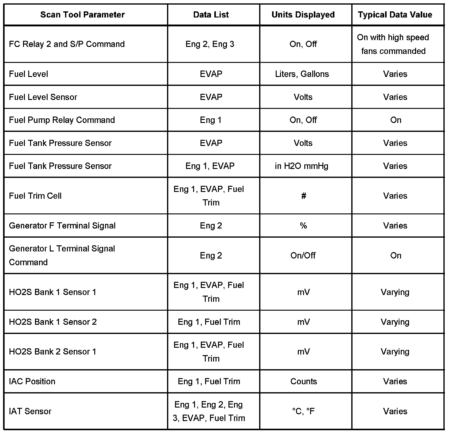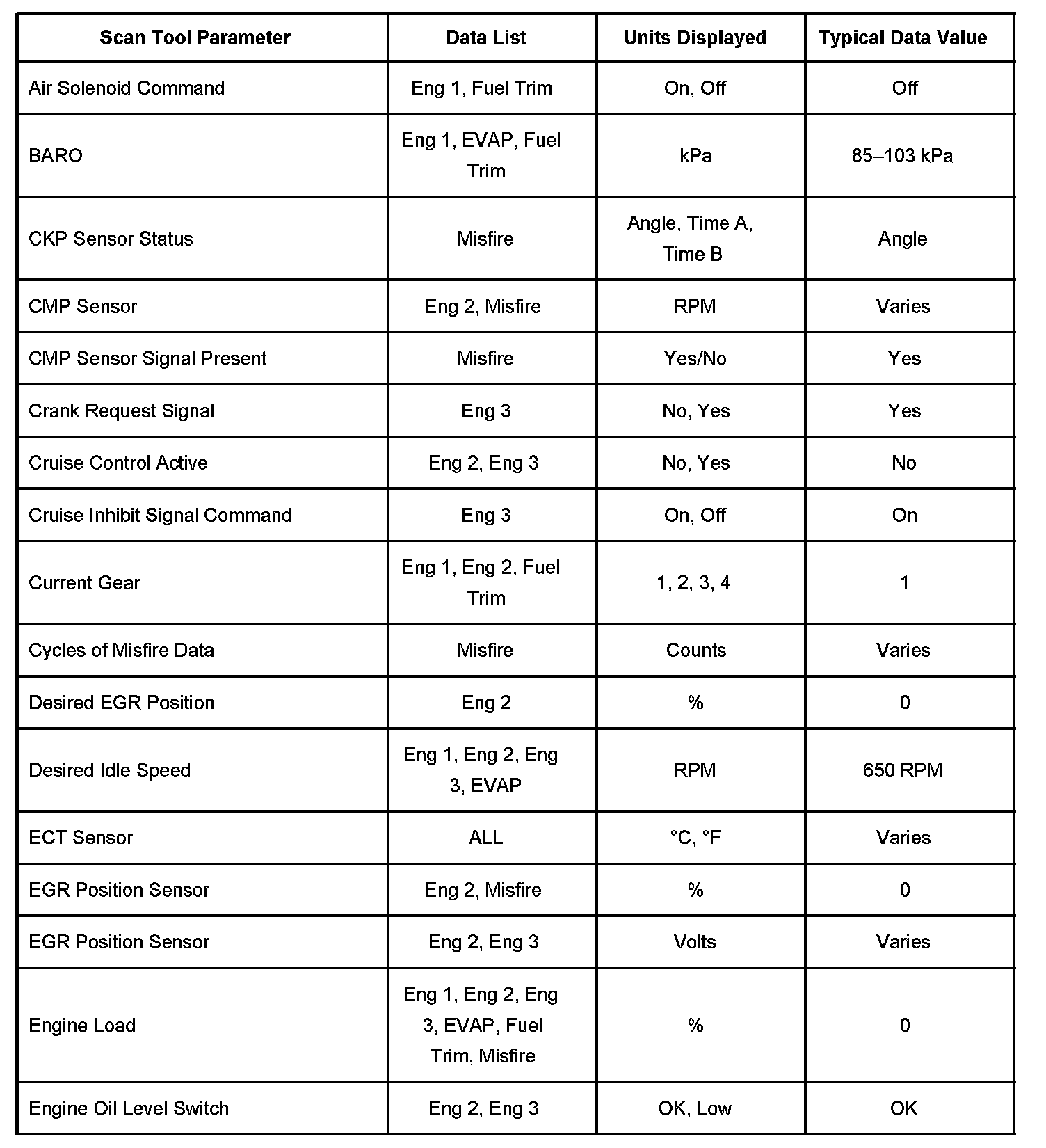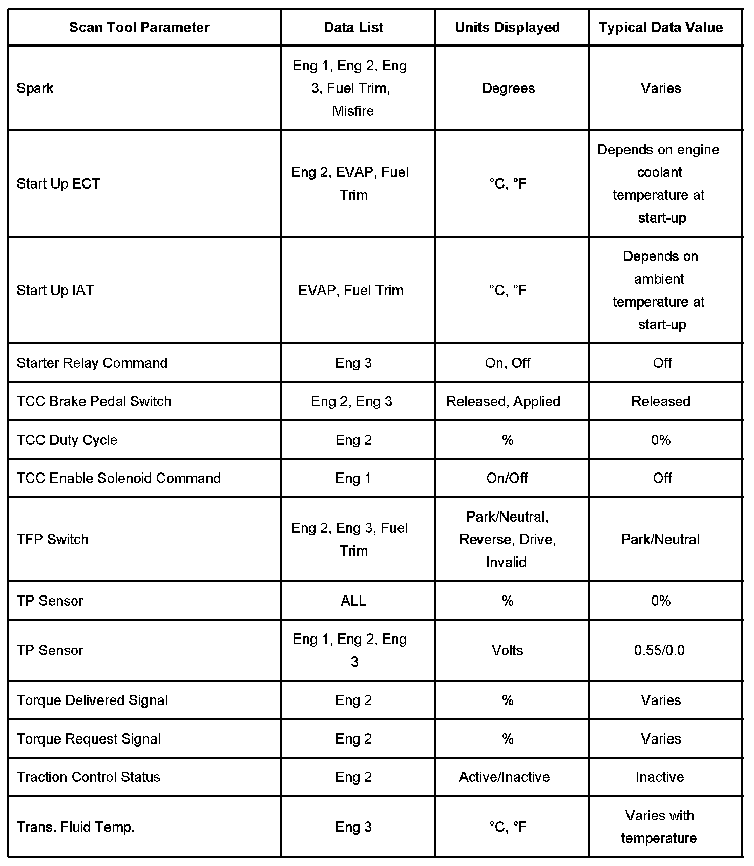 Scan Tool Data List - Powertrain System