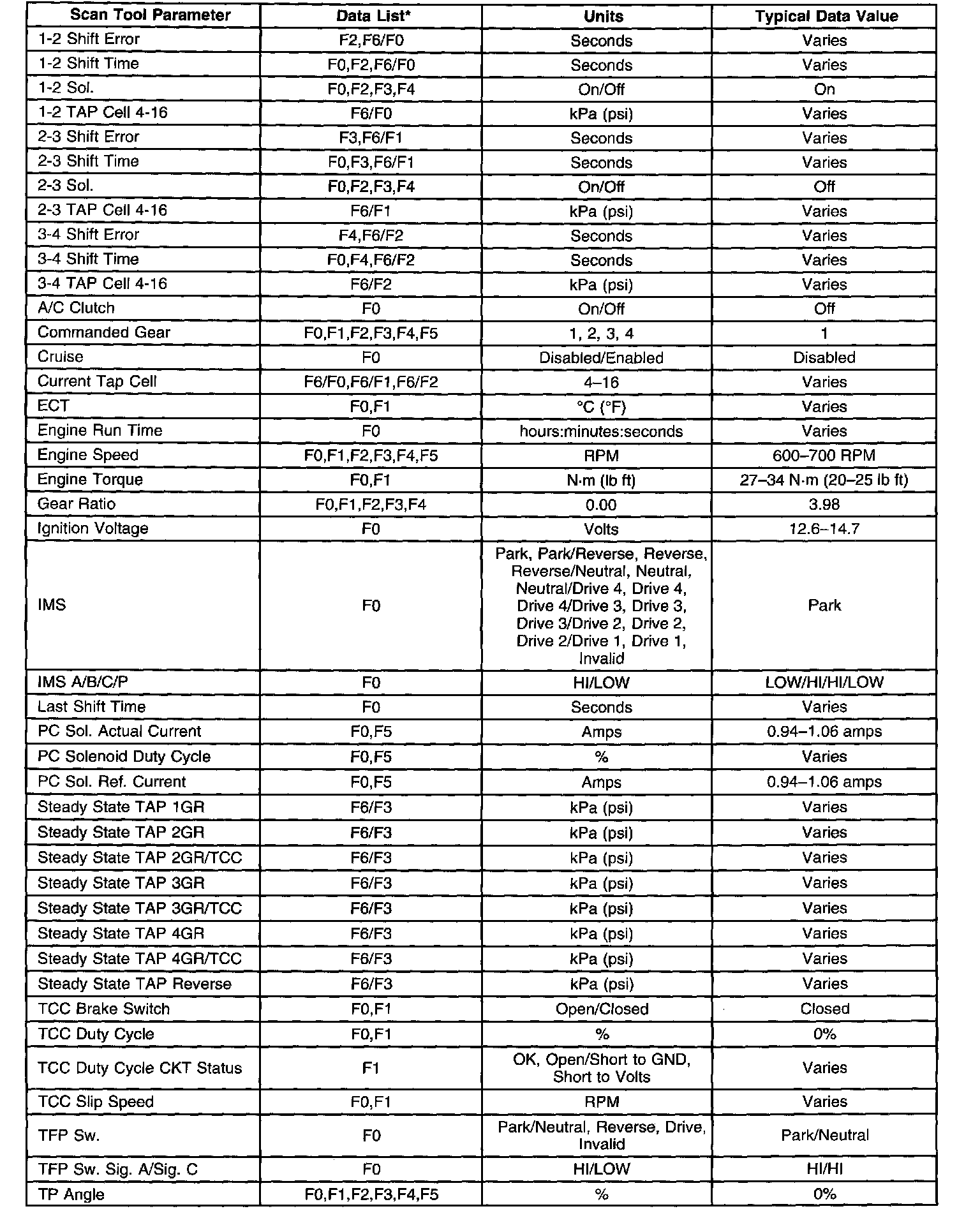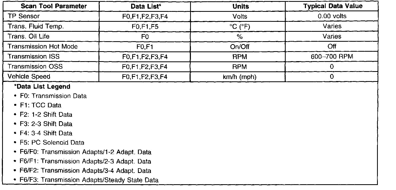 Transmission Scan Tool Data List