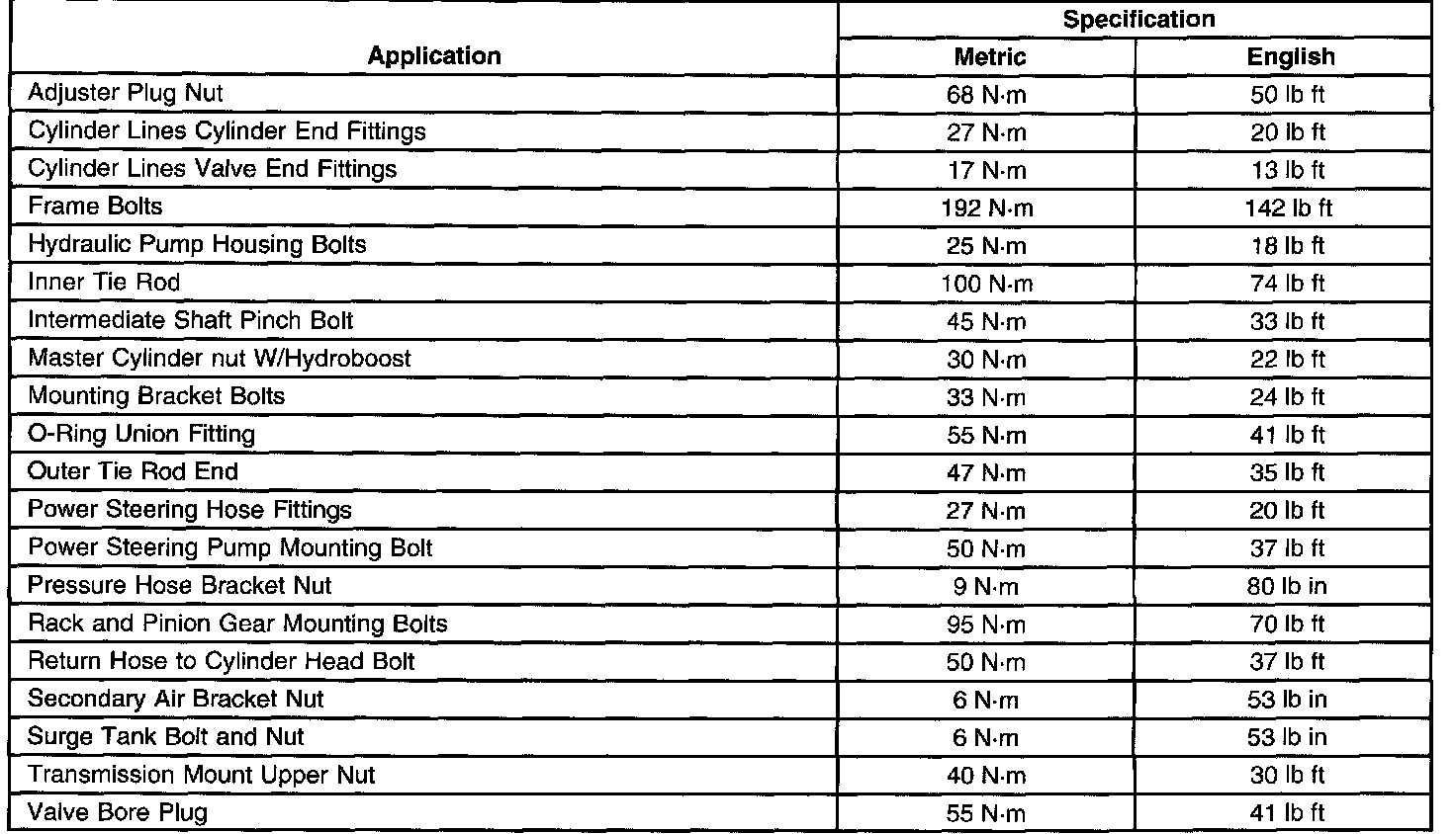 Fastener Tightening Specifications: