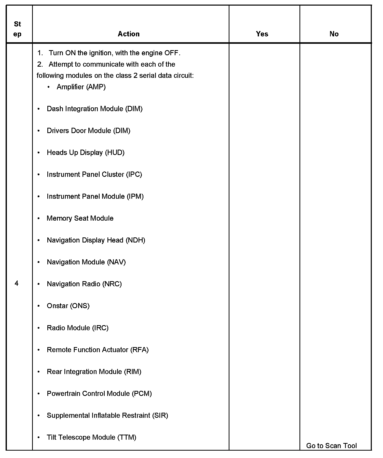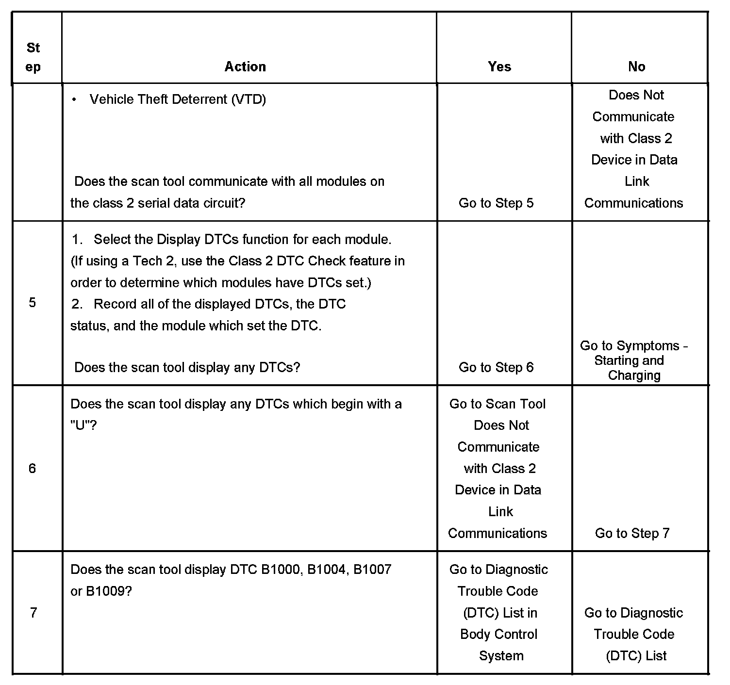4. Lack of communication may be because of a partial malfunction of the class 2 serial data circuit or due to a total malfunction of the class 2 serial data circuit. The specified procedure will determine the particular condition.