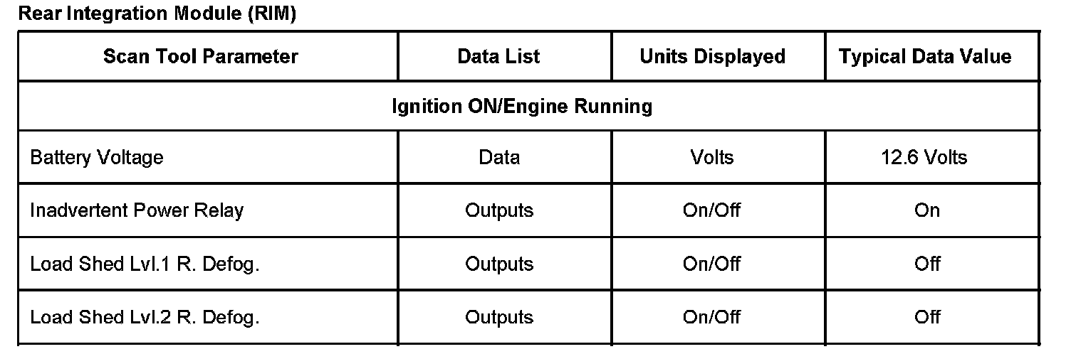 Scan Tool Data List - Rear Integration Module (RIM):