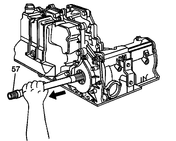 6. Remove the output shaft (57) through the opposite end of the case.