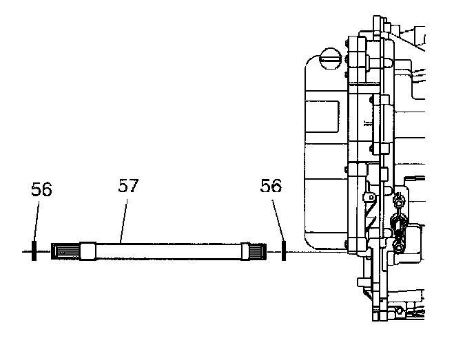 1. Inspect the output shaft (57) splines for burrs or damage. Inspect the snap rings (56) for overexpansion.