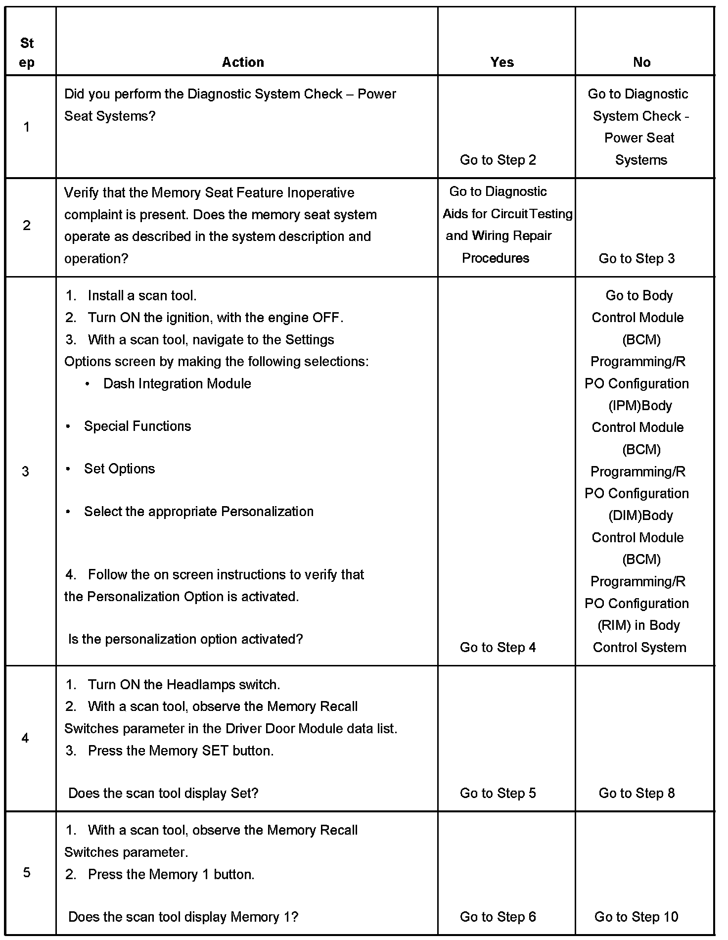 MEMORY SEAT FEATURE INOPERATIVETEST DESCRIPTION