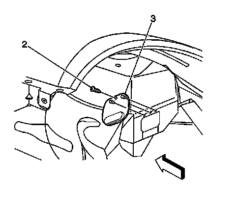 2. Install the push in retainer (2) in order to secure the cowl drain valve (3).