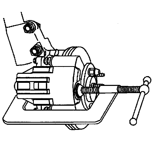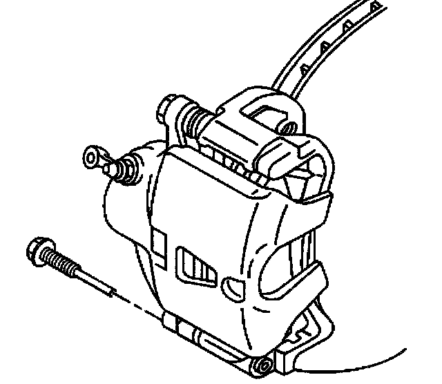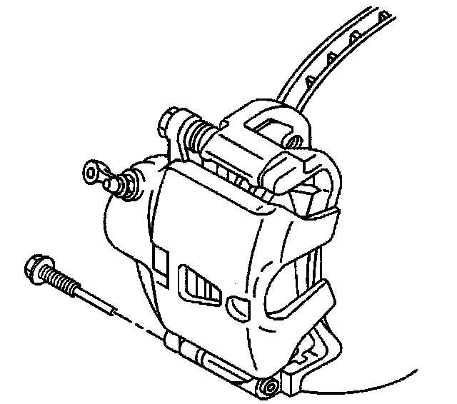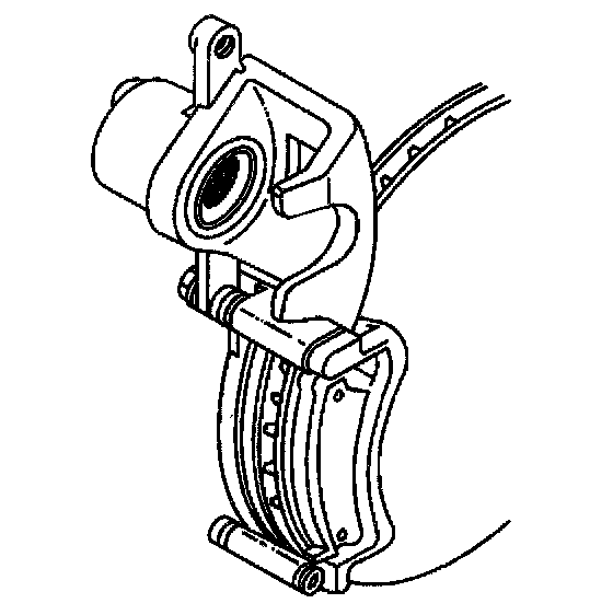 Notice: Support the brake caliper with heavy mechanic's wire, or equivalent, whenever it is separated from it's mount and the hydraulic flexible brake hose is still connected. Failure to support the caliper in this manner will cause the flexible brake hose to bear the weight of the caliper, which may cause damage to the brake hose and in turn may cause a brake fluid leak.