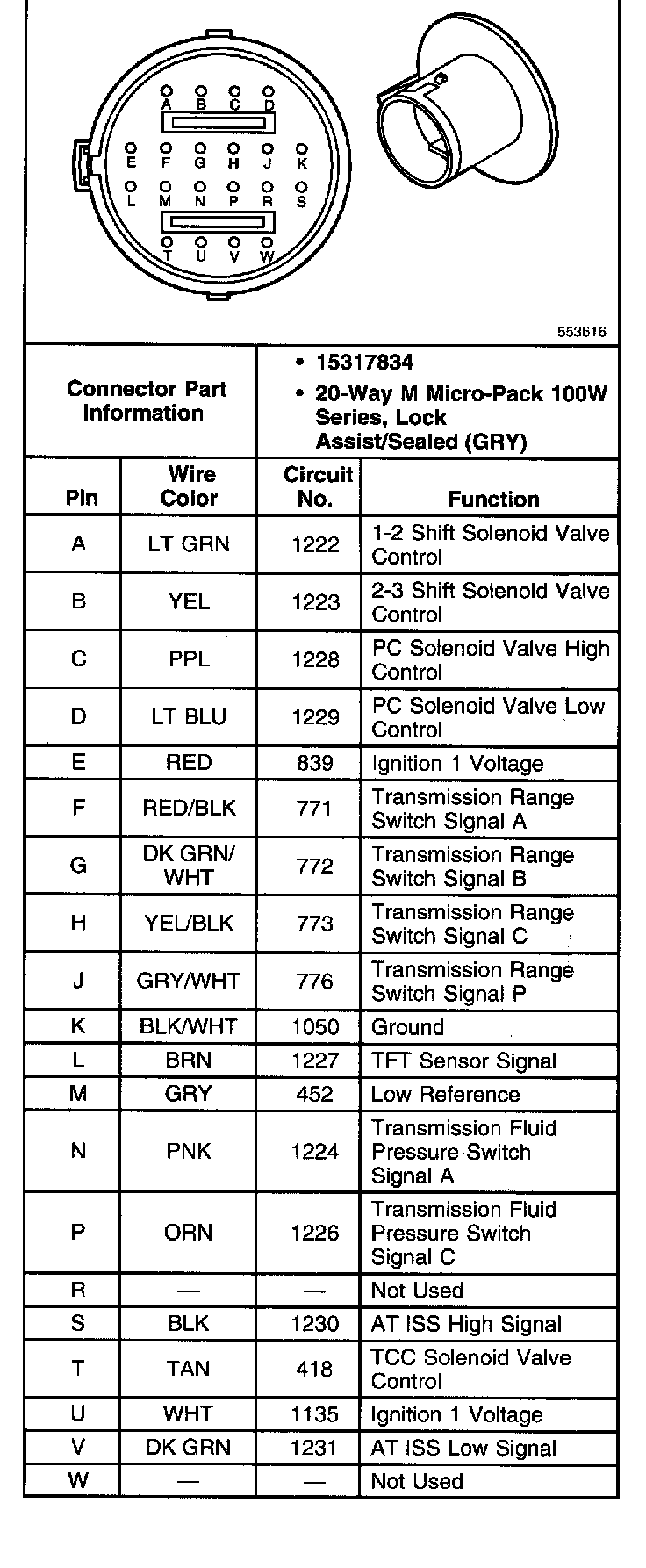 A/T Inline Harness 20-Way Connector, Transmission Side