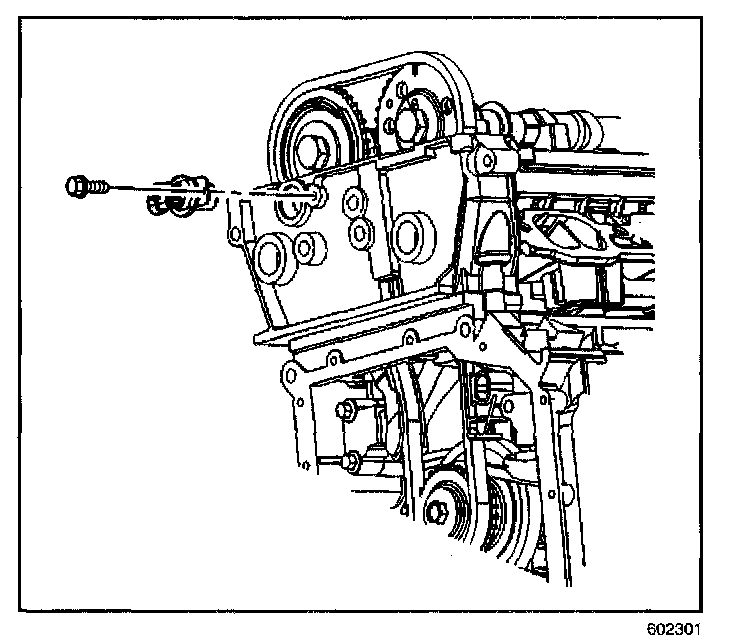 2. Remove the camshaft retaining bolt.